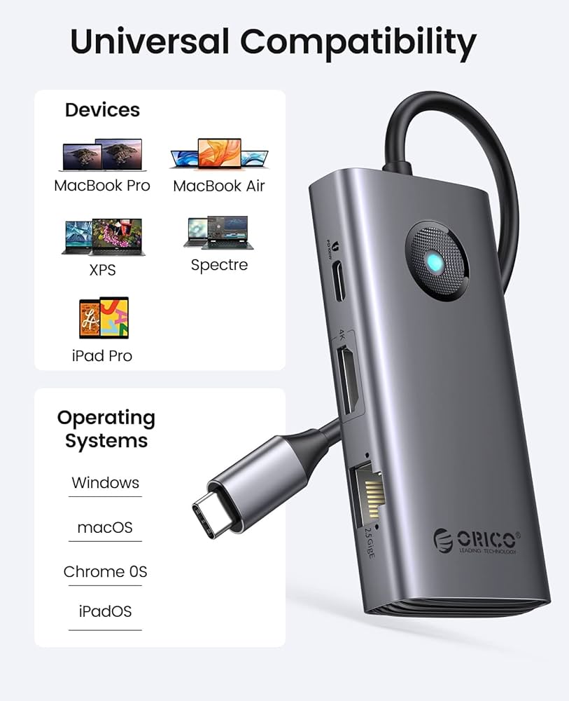 - Hub ORICO PW11-6PR-SV-EP cung cấp tất cả các cổng kết nối cần thiết chỉ trong một thiết bị nhỏ gọn, giúp bạn dễ dàng kết nối nhiều thiết bị cùng lúc mà không cần phải mang theo nhiều phụ kiện phức tạp.