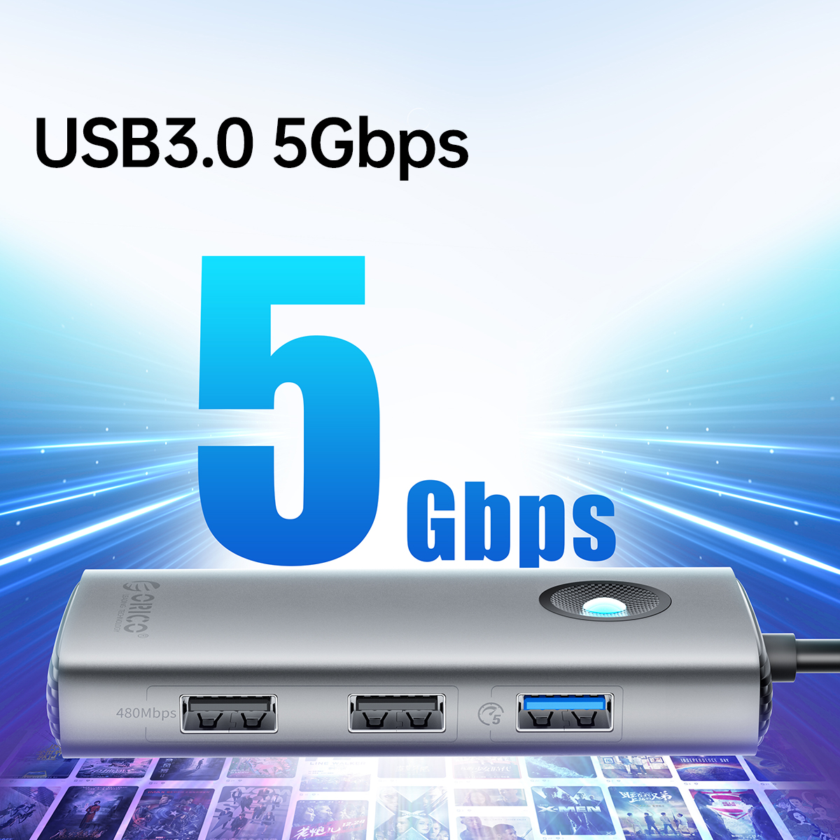 1. Input: USB 3.0 A Male 2. Output: USB 3.0 A Female × 4 3. Speed up to 5Gbps 4. Support 10 TB hard drive 5. With USB-C power port DC 5V 6. plug &