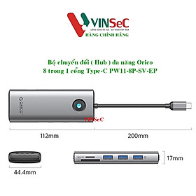 ✨Bộ chuyển đổi ( Hub ) đa năng 8 trong 1 cổng Type-C Orico PW11-8P-SV-EP - Hàng Chính Hãng