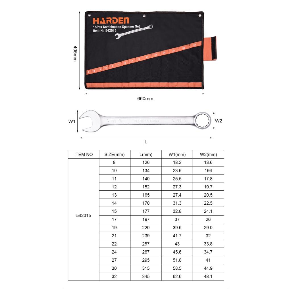 ✨Bộ Cờ Lê 2 Đầu 15 Món – Mạ Chrome Chống Gỉ – Kích Thước 8–32mm – Có Túi Treo