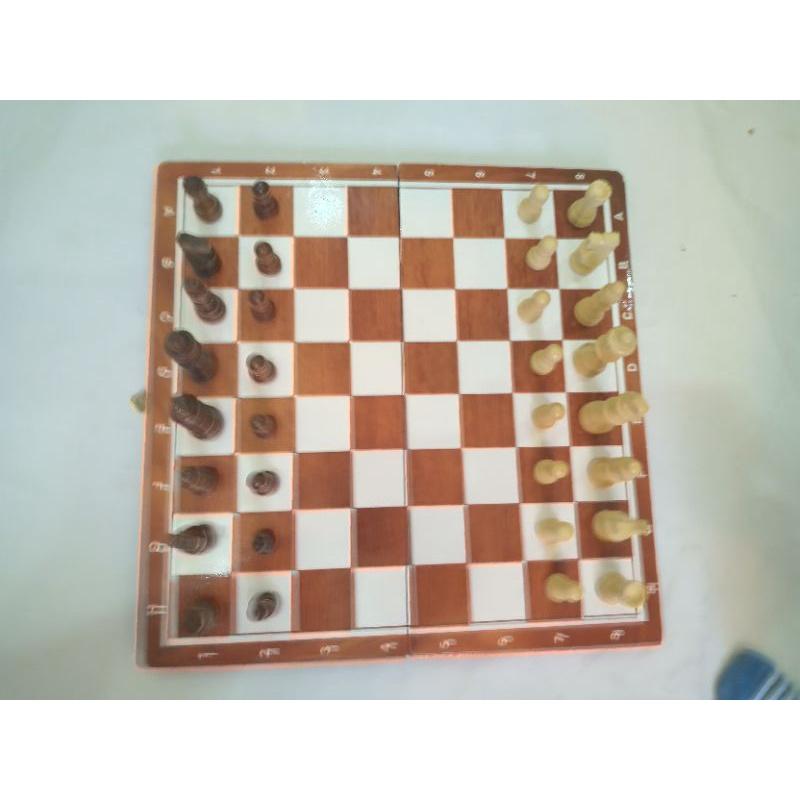 Mua tại TiktokBàn cờ vua gỗ tự nhiên -Quân cờ vua gỗ tần bì Bàn cờ vua gỗ tự nhiên kích thước 35x 36cm x 2cm-Quân cờ vua gỗ tần bì Bao gồm : 1 bàn cờ vua gấp kích thước 35x 36 cm , bàn gấp gỗ lim , ô bàn cờ làm thủ công , bàn gồm 32 miếng ghép , ô gỗ thông và gỗ hương 1, 1 bộ quân gỗ thông tự nhiên, gồm 32 quân , quân tướng cao 8,0cmx 2,5cm ; quân hậu 7,2cm;quân tịnh cao 6,7cm;quân xe cao4,2cm; quân mã 4,6cm; quân tốt cao 3,5cmx 1,9cm 2, 1 bộ quân gỗ thông tự nhiên, gồm 32 quân , quân tướng cao 5,5cm; quân hậu 5,2cm;quân tịnh cao 4,6cm;quân xe cao 3,4cm; quân mã 4,0cm; quân tốt cao 2,7cm