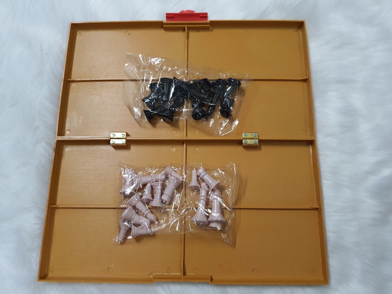 - Bàn cờ làm bằng nhựa và có thể gấp gọn. Các ô trên bàn cờ được in màu nổi bật, rõ ràng và không bị lem.