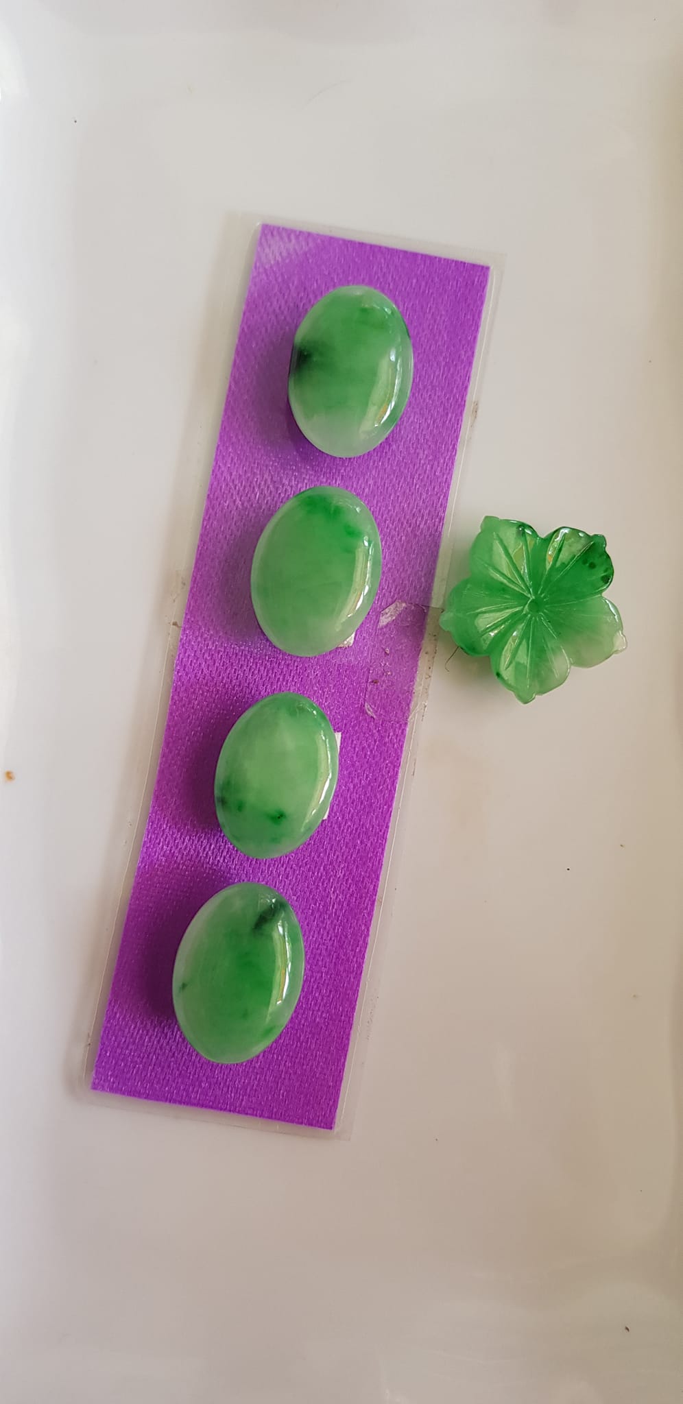 BỘ MẶT YÊN NGỰA GỒM 4 VIÊN ĐÁ CẨM THẠCH XANH LÁ TƯƠI Size Dài 19mm x Ngang 8mm x Dầy 3mm NỮ LÊN LẮC TAY ĐEO ĐẸP Ạ Sản phẩm này là tài sản