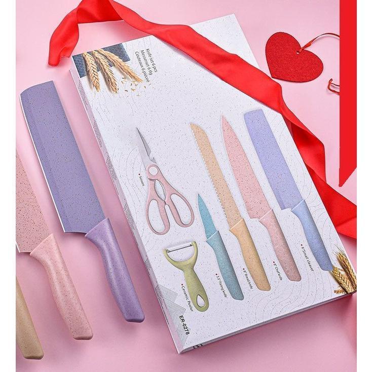 Bộ dao 6 món này sẽ mang đến cho không gian bếp của bạn sự sang trọng và phục vụ cho nhu cầu chế biến các loại thực phẩm cho gia đình bạn. Với chất liệu 100% kháng khuẩn, bộ dao này giúp cho việc vệ sinh và bảo quản bộ dao trở nên dễ dàng hơn, đồng thời cũng giúp cho bộ dao luôn sạch sẽ và an toàn cho sức khỏe của người dùng.