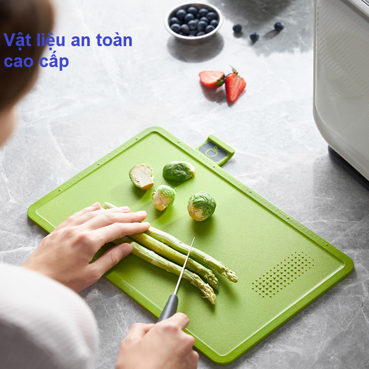 Màu xanh là dao thớt cắt trái cây, rau củ: Sử dụng cắt trái cây làm các loại nước ép tùy thích, thưởng thức ngay ly nước ép ngon tuyệt, có thể dùng để thái rau xanh, củ quả chuyên dụng.