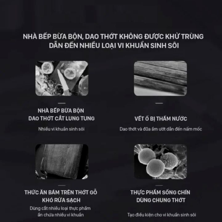 Lý Do Nên Sử Dụng Bộ Dao Thớt Khử Trùng MR1002 Nhà bếp bừa bộn không ngăn nắp, dao thớt muỗng đũa không được khử trùng kỹ càng có thể dẫn đến tình trạng khiến nhiều loại vi khuẩn có cơ hội sinh sôi sinh phát triển, tiềm ẩn những nguy hiểm cho sức khỏe. Hãy sử dụng Bộ Dao Thớt Khử Trùng MR1002 để loại bỏ ngay những vấn đề liên quan đến vi khuẩn: