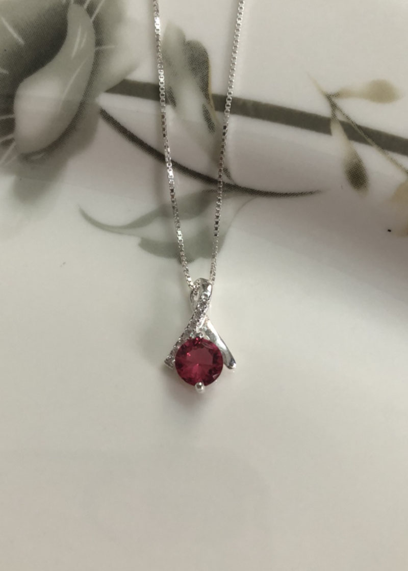 ✨Bộ dây chuyền liền mặt trang sức bạc Ý S925 Bạc xinh Huệ Ngân- Giọt sương PP1712 ĐỎ