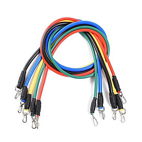Bộ dây đàn hồi tập thể lực có 5 dây, mỗi dây có mức trọng lượng khác nhau, từ nhẹ tới nặng (8 lbs, 15 lbs, 20 lbs, 25 lbs, 30 lbs) có thể