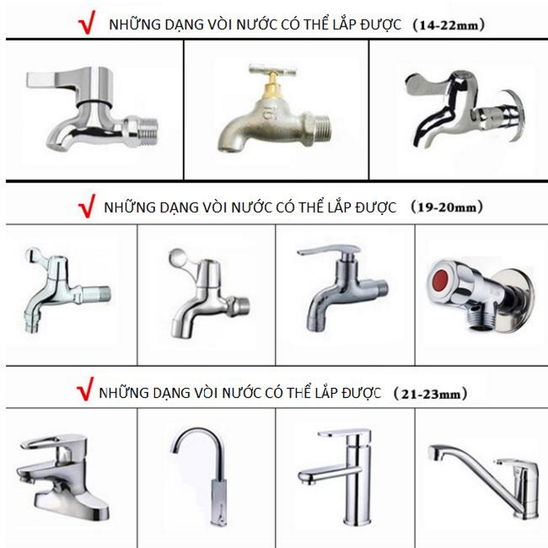 Sản phẩm kết nối với ống nước bằng khớp nối nhanh (không tặng kèm). Quý khách có thể mua thêm khớp nối nhanh tại đường link sau. Tùy vào kích cỡ ống nước mà quý