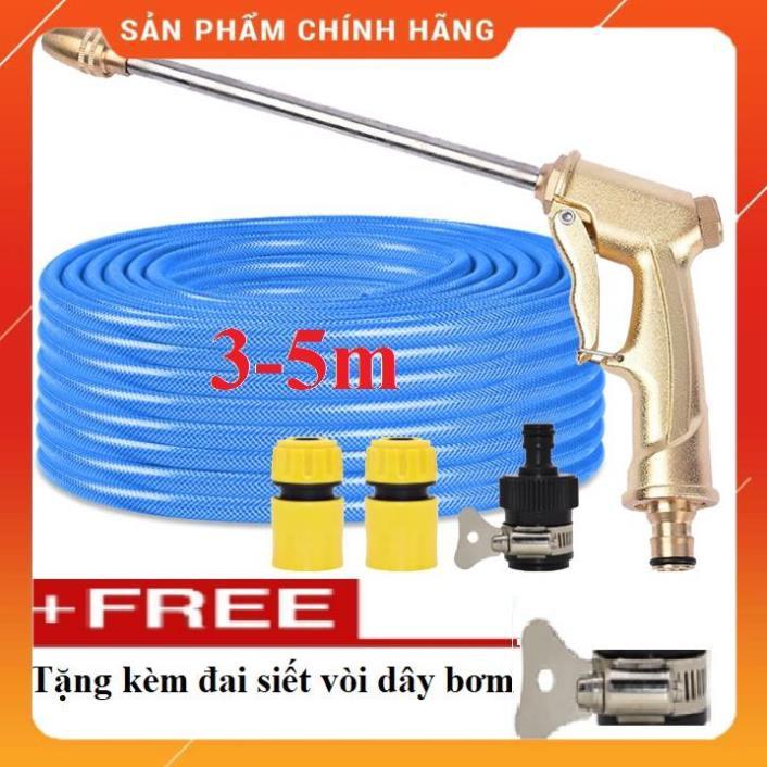 ✨️ Bộ dây vòi xịt nước rửa xe, tưới cây , tăng áp 3 lần,loại 3m,5m 206701-3 đầu đồng,cút nối nhựa đen