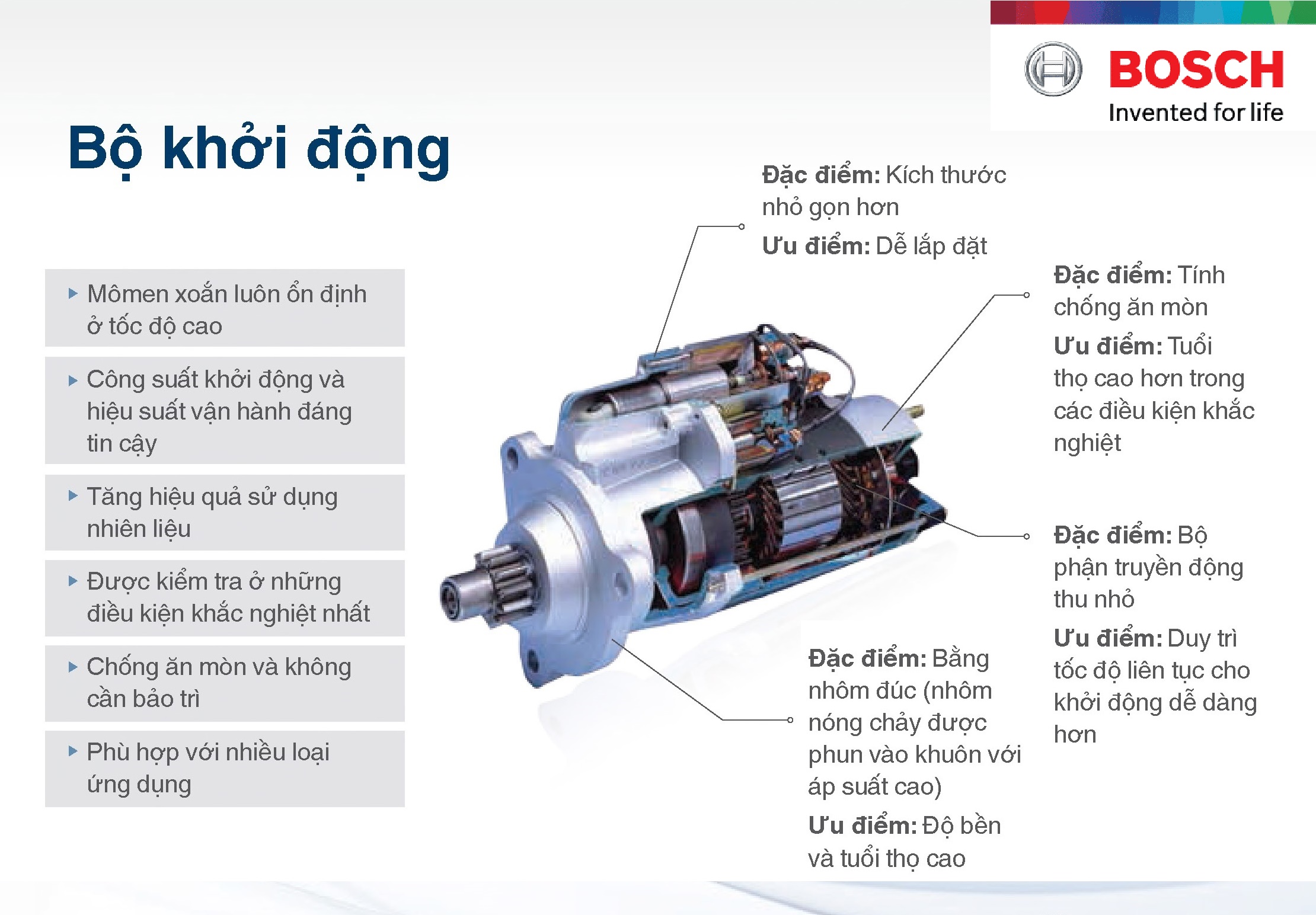 Bạn có thể luôn luôn tin tưởng vào bộ đề khởi động của Bosch với hơn 75 năm kinh nghiệp trong sản xuất chế tạo bộ đề khởi động – Bosch có thể cung
