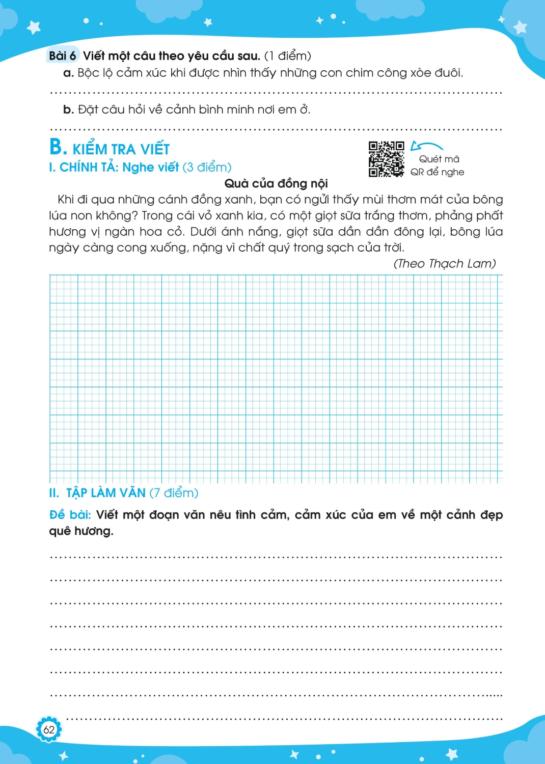 - Bộ Đề Ôn Luyện Và Kiểm Tra Tiếng Việt 3 - Tập 2 Bộ đề ôn luyện và kiểm tra Tiếng Việt Tập 1 và Tập 2 lớp 3 là người bạn đồng hành tuyệt vời dành cho các em học sinh lớp 3 theo chương trình giáo dục mới. Sách được chia thành hai phần rõ ràng: Đề ôn luyện giúp các em nắm vững kiến thức cơ bản, luyện tập hàng ngày một cách bài bản; Đề kiểm tra giúp các em tự đánh giá năng lực, chuẩn bị sẵn sàng cho các kỳ thi trên lớp. Với nội dung bám sát chương trình học, trình bày dễ hiểu và bài tập đa dạng, cuốn sách không chỉ giúp các em học tốt mà còn khơi dậy niềm yêu thích với môn Tiếng Việt. ƯU ĐIỂM CỦA BỘ SÁCH ĐỀ ÔN LUYỆN VÀ KIỂM TRA TIẾNG VIỆT