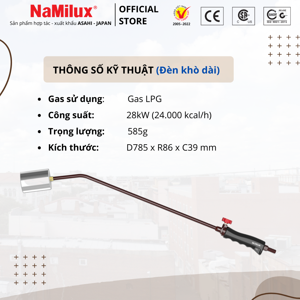 Bộ đèn khò gas công nghiệp Namilux NA-203S/60 là sản phẩm an toàn, tiện dụng, và rất phổ biến hiện nay. Đây là sản phẩm hợp tác xuất khấu ASAHI SEISAKUSHO - JAPAN. Với ống