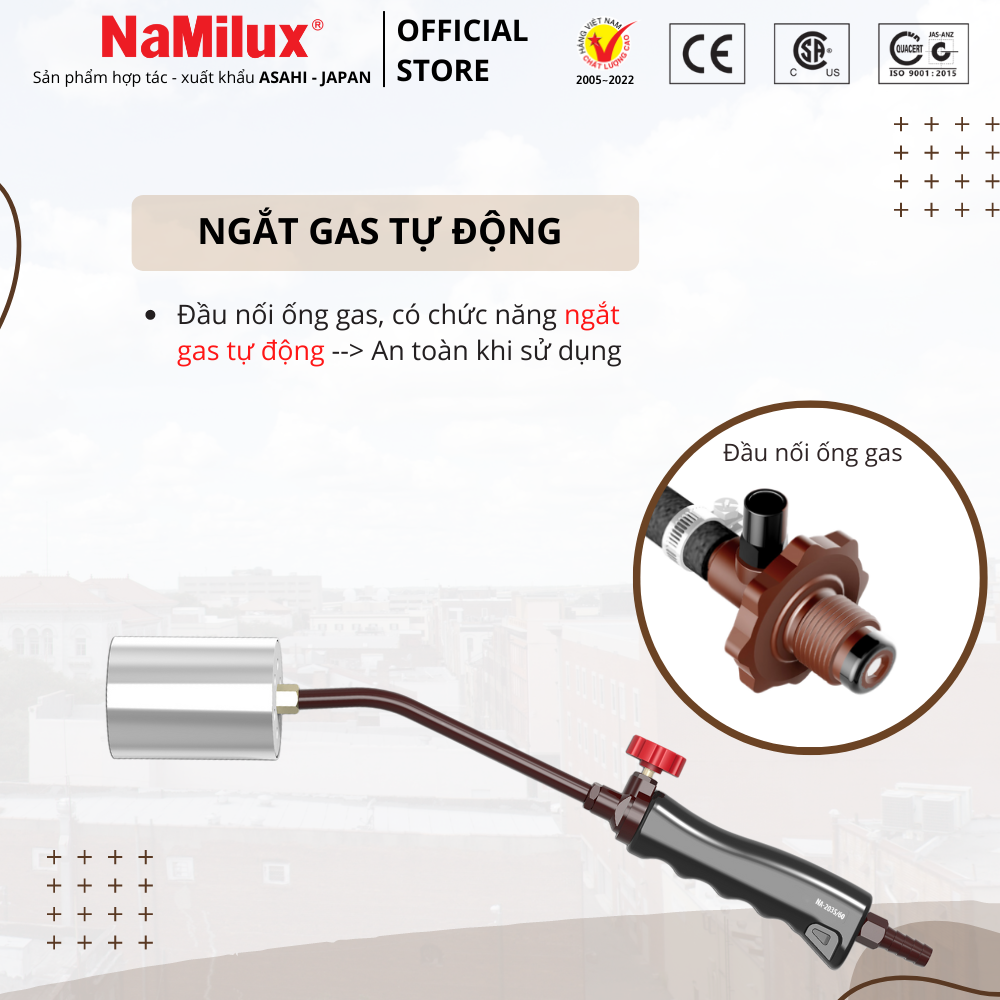 ✨Bộ Đèn Khò Gas Công Nghiệp NaMilux I Ngắt Gas Tự Động I Đường Kinh Ống Lửa 60mm I Hàng Chính Hãng