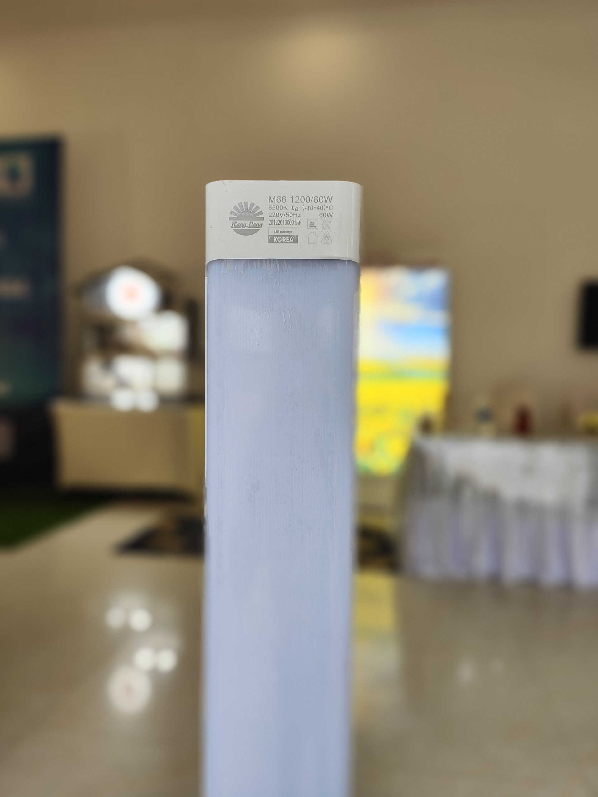 THÔNG TIN SẢN PHẨM Tiết kiệm đến 65 % điện năng Tiết kiệm 65% điện năng thay thế bộ đèn huỳnh quang T8 1.2m 36Wx2Giúp giảm chi phí hóa đơn tiền điện. Tuổi thọ cao Tuổi thọ cao 25000 giờ,độ tin cậy cao,không hạn chế số lần bật tắtCao gấp 2-2.5 lần so với đèn huỳnh quang T8 Dải điện áp hoạt động rộng,tương thích điện từ trường EMC/EMI Đèn LED códải điện áp rộng (150-250V) ánh sáng vàcông suất không thay đổi khi điện áp lưới thay đổi.Tương thích điện từ trường không gây ra hiện tượng nhiễu cho sản phẩm điện tử và không bị ảnh hưởng nhiễu của các thiết bị điện tử khác Hệ số trả màu (CRI >= 80) Hệ số trả màu cao (CRI >= 80),ánh sáng trung thực tự nhiên.Tăng khả năng nhận diện màu sắc của vật được chiếu sáng.Đáp ứng tiêu chuẩn chiếu sáng Việt Nam TCVN 7114:2008 Đáp ứng Tiêu chuẩn Việt Nam (TCVN),Quốc tế (IEC) TCVN 7722-1:2009/ IEC 60598-1:2008:về đèn điện Thân thiện môi trường Không chứa hóa chất độc hại,không phát ra tia tử ngoại,an toàn cho người sử dụng Ứng dụng