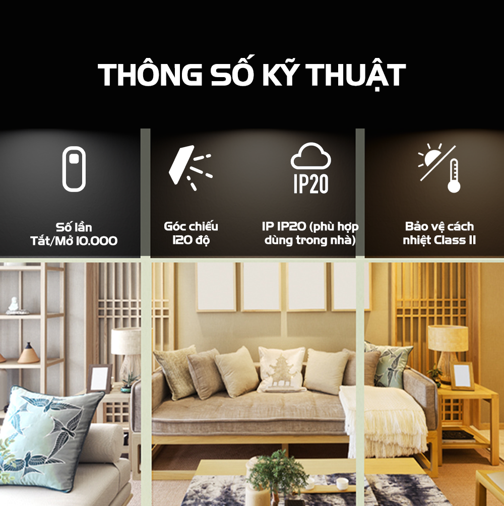 . IP IP20 (phù hợp dùng trong nhà)