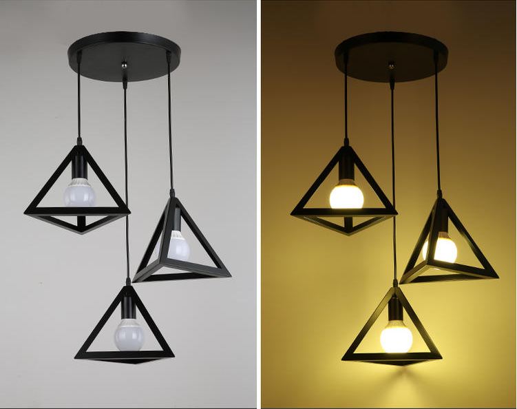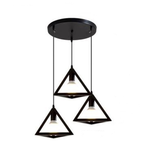 Bộ 3 đèn thả trang trí khối tam giác đa chiều trang trí cao cấp KÈM BÓNG LED Đường kính đèn 25cm. Làm bằng khung sắt sơn tĩnh điện. Phù hợp cho