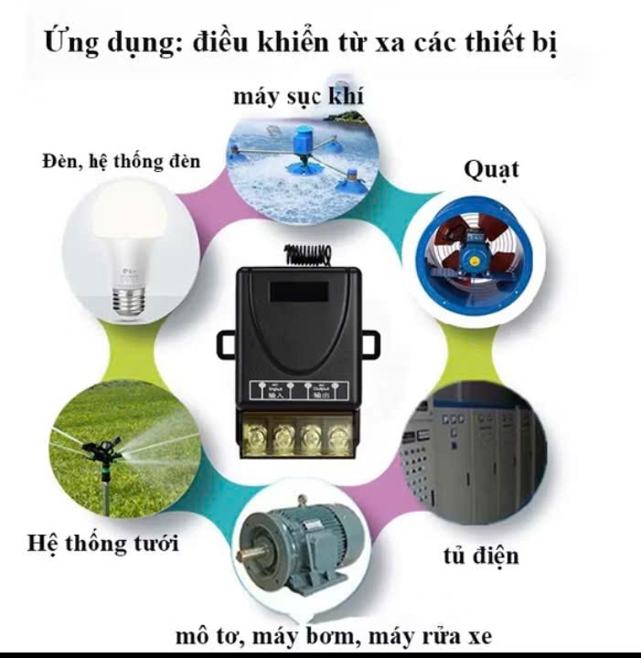 Công tắc đóng ngắt điện điều khiển từ xa 100m điều khiển Dùng để điều khiển đóng ngắt thiết bị điện từ xa như: đèn, quạt, máy bơm nước cửa cuốn….vvvv với công suất tải