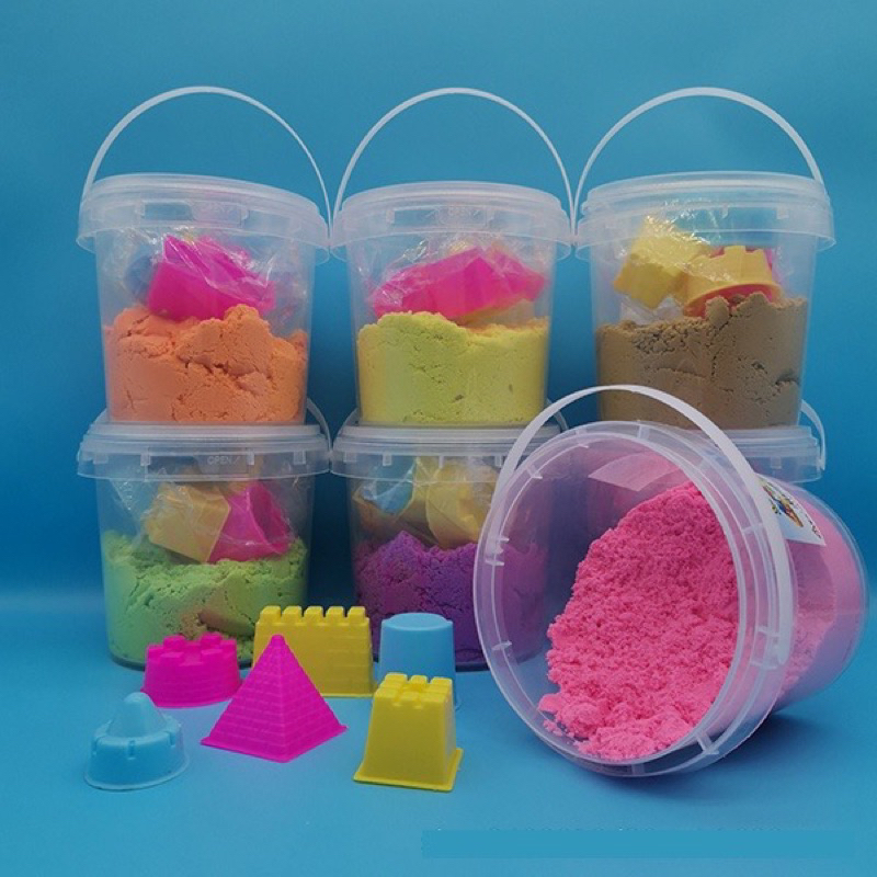 Đặc biệt cát chính hãng KHÔNG BỊ KHÔ, luôn mềm dẻo. Khuyến cáo nên thay cát 6-12,tháng/lần nhé! Bộ đồ chơi cát động lực có hộp kèm khuôn đủ màu an toàn cho các bé thỏa sức sáng tạo