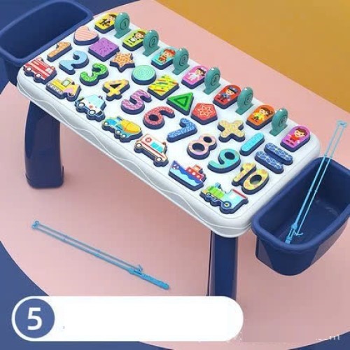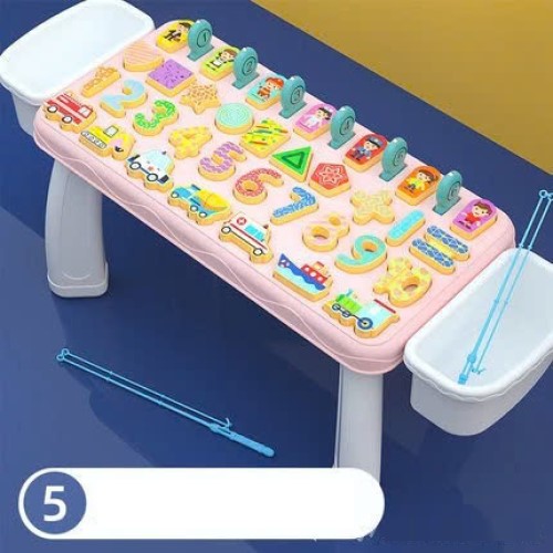 Kết hợp đủ các trò chơi bé thích: ghép số, xếp vòng tương ứng các số, câu cá, mặt sau của cá cũng có số để xếp đúng vị trí và học cộng trừ luôn