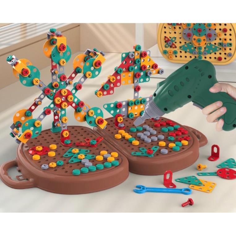 ✨Bộ đồ chơi kỹ sư lắp ráp kèm khoan điện - đồ chơi vặn ốc vít - Cho bé từ 3 tuổi