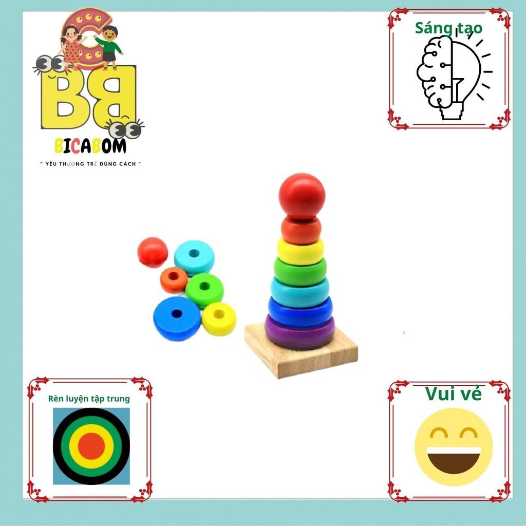 TÊN SẢN PHẨM: Bộ Đồ Chơi Tháp Xếp Cầu Vòng 7 Màu Bằng Gỗ Mini Cho Bé