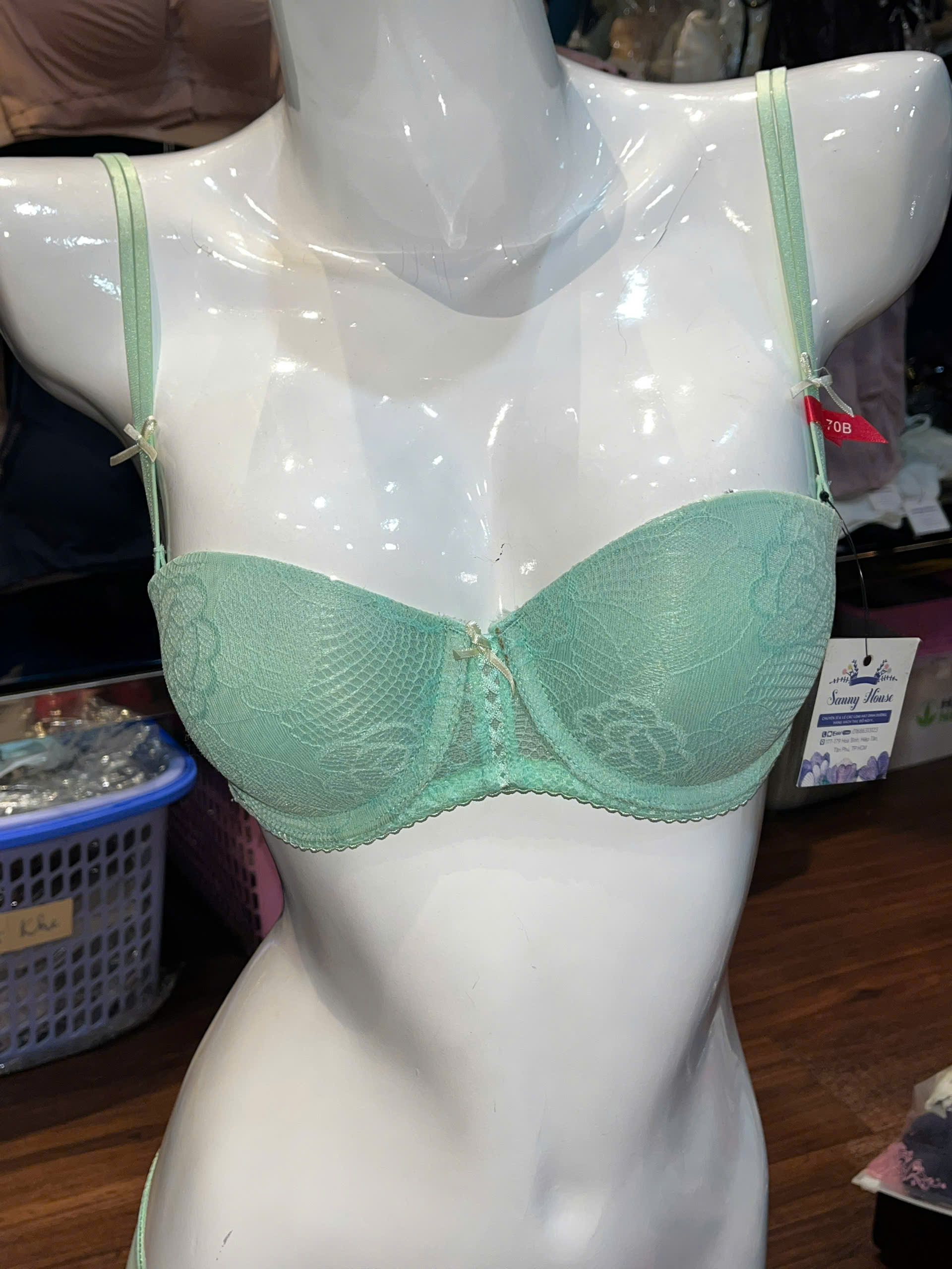 Thương hiệu: Sanny House Tên sản phẩm: Bộ đồ lót Vic Chất liệu: ren cao cấp mềm mịn, co giãn, thấm hút tốt Kiểu dáng: gợi cảm, trẻ trung, hiện đại Màu: xanh da, trắng,