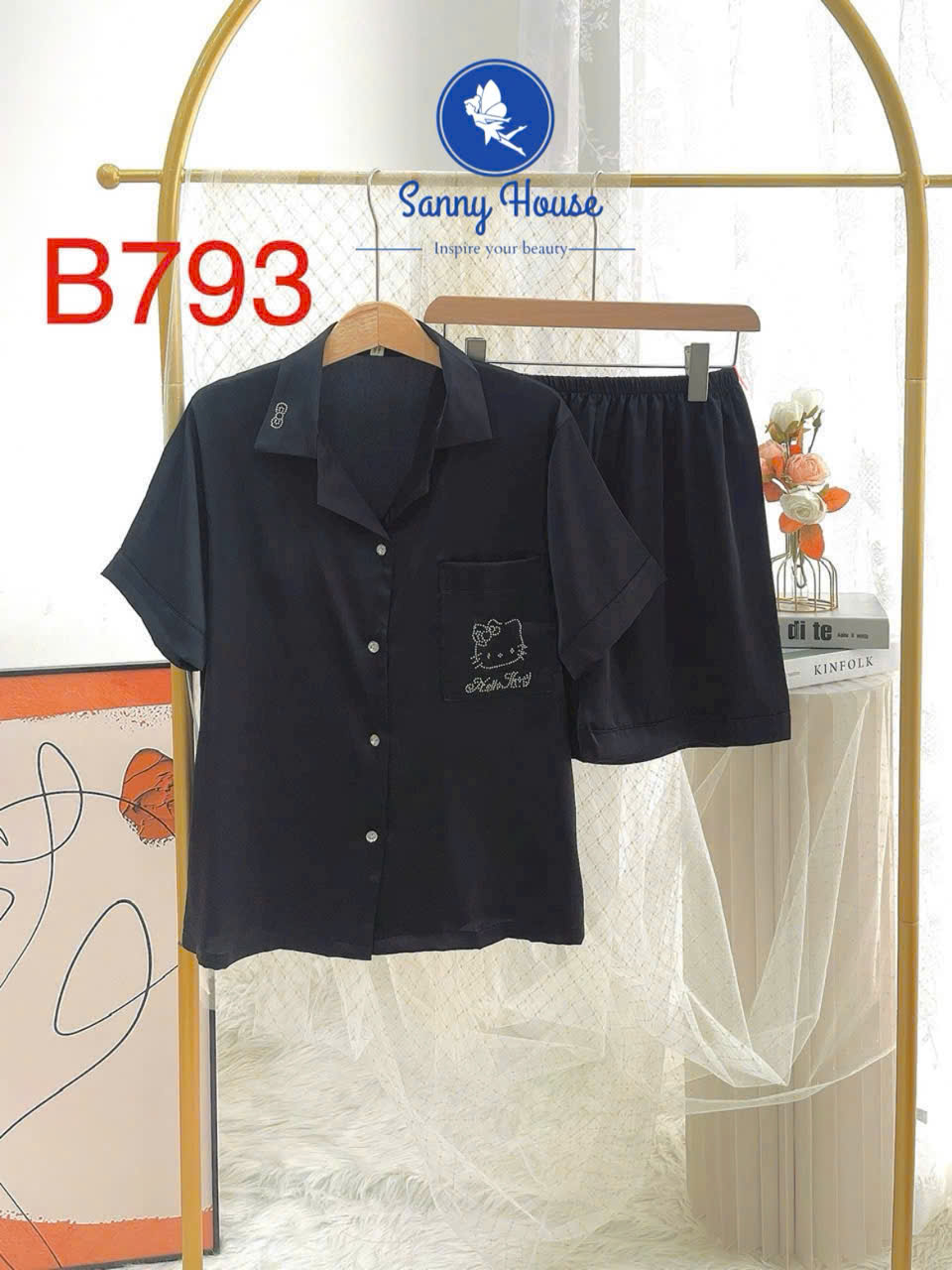 Thương hiệu: Sanny House Tên sản phẩm: Bộ Đồ Ngủ Chất liệu: lụa cao cấp mềm mịn, co giãn, thấm hút tốt Kiểu dáng: dễ thương, trẻ trung, hiện đại Màu: đen Size: dưới 60kg
