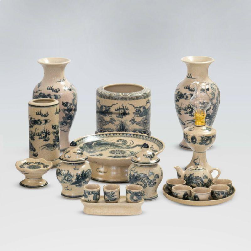 Bộ Đồ Thờ Men Rạn Cao Cấp Gốm Sứ Bát Tràng