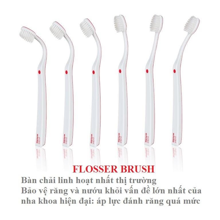 Bàn chải Flosser Brush lông siêu mềm UltraSoft với tay cầm linh hoạt tối đa hóa việc làm sạch và giảm thiểu hư hại răng lợi