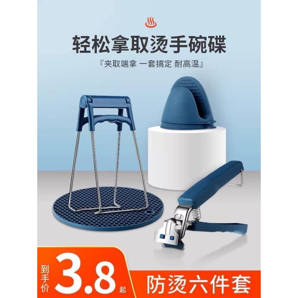 Set 6 dụng cụ gắp đồ nóng chống bỏng, kẹp chén dĩa, găng tay, miếng rửa bát Bộ dụng cụ gắp bát dĩa