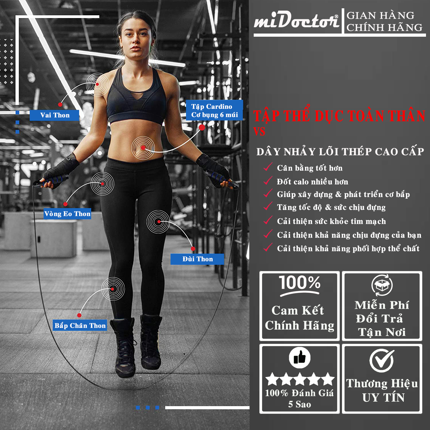 Bộ Dụng Cụ Hít Đất Cầm Tay Và Dây Nhảy Lõi Thép Có Thể Điều Chỉnh Dộ Dài Chống Rối – Combo Dụng Cụ Chống Đẩy Kèm Dây Nhảy Lõi Thép Tập Gym Tập Thể Thao Cao Cấp Chính Hãng miDoctor Mô tả - Dụng cụ hít đất cầm tay + dây nhảy lõi thép cao cấp chính hãng miDoctor: