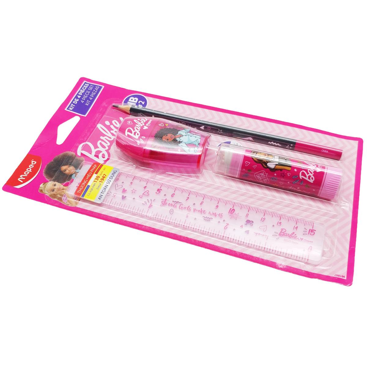 ✨Bộ Dụng Cụ Học Tập 4 Món Barbie - Maped CB98186700 - Màu Hồng