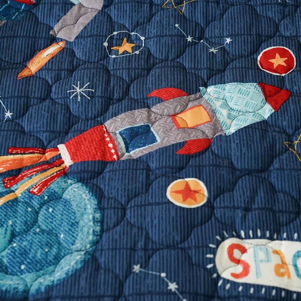 Mã sản phẩm: EPM22072 thuộc bộ sưu tập 2021 Chất liệu: Modal Xuất xứ: Việt Nam Mô tả: Bộ chăn ga EPM22072 được lấy cảm hứng từ vũ trụ mênh mông rộng lớn, nơi mà mọi hành tinh đều kết nối với nhau, tạo nên một dài ngân hà tươi đẹp. EPM22072 vẽ lên hình ảnh tàu vũ trụ, các chùm sao, các hành tinh giữa nền vải màu xanh than như bầu trời đêm đầy màu sắc. Đối lập với mặt ngoài, mặt trong chăn sử dụng gam màu be sáng, tô điểm thêm những tiểu hành tinh nhỏ bay lượn. Bộ chăn ga như phác họa lại trí tưởng tượng phong phú của trẻ thơ về một thế giới rộng lớn, , thúc đẩy niềm yêu thích của bé với thiên nhiên và tạo sự thích thú cho bé khi chìm vào giấc ngủ