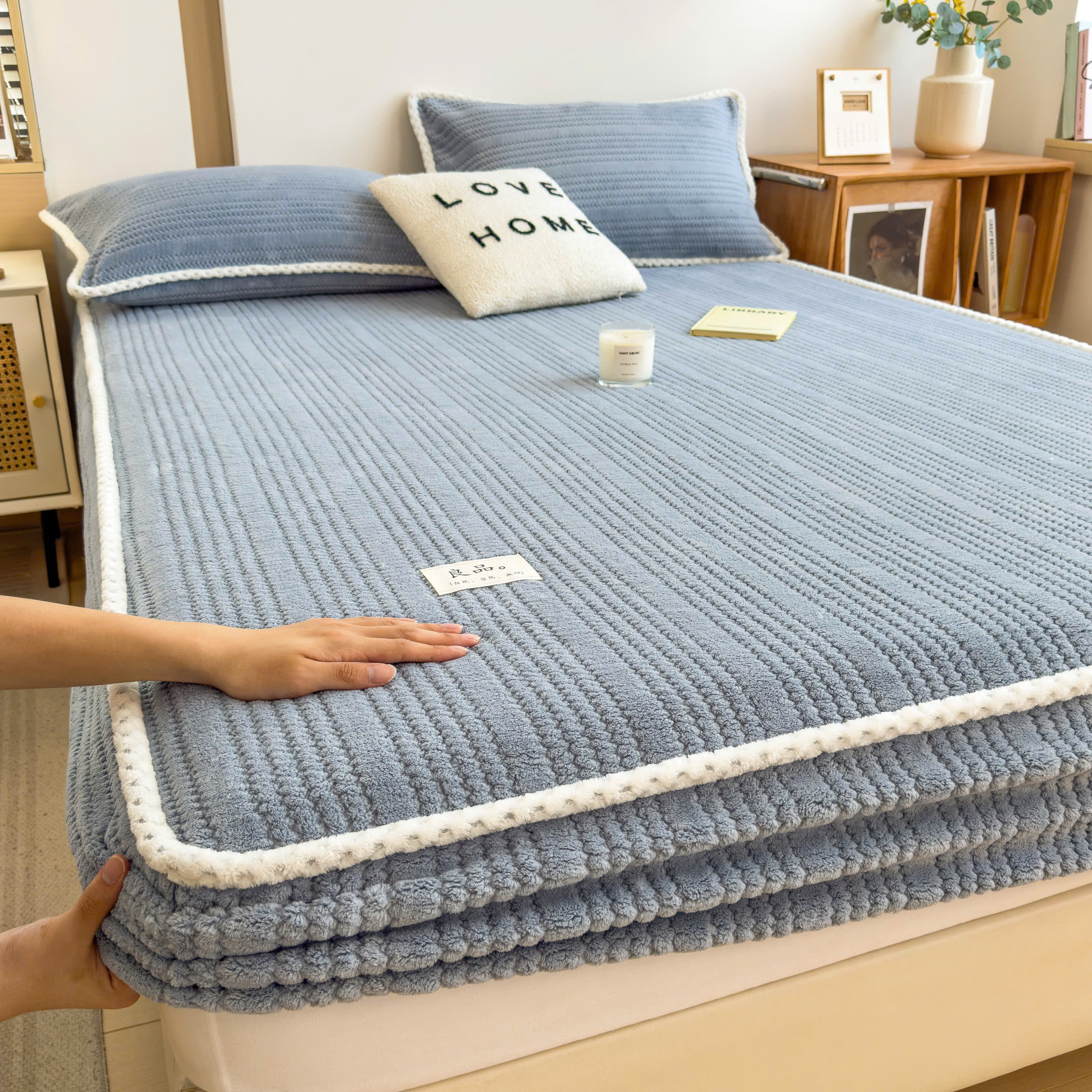 ✨Bộ ga gối nỉ sữa LIDACO họa tiết dập vân chìm siêu mềm mịn cho mùa đông ấm áp dùng được cho nệm ~30cm