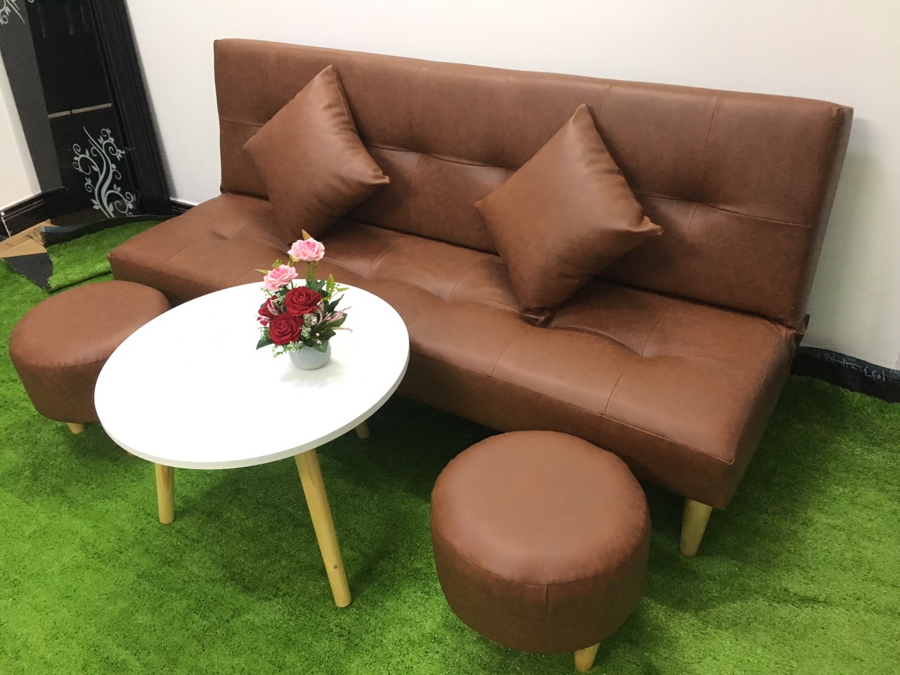 Mua tại TiktokSofa bed, sofa giường 1m7x90, có thể bật ra thành giường để nằm Kích thước 1m7x90 (kích thước phổ thông) Chất liệu: khung gỗ dầu, mút d30, simili Bao gồm: ghế dài 1m7x90, 2 gối ôm, 2 ghế đôn tròn, bàn tròn đường kính 60x45 The sofa can be unfold to be bed Size: 170cm x 90 including sofa bed, 2 cushions, 2 ottomans and white table