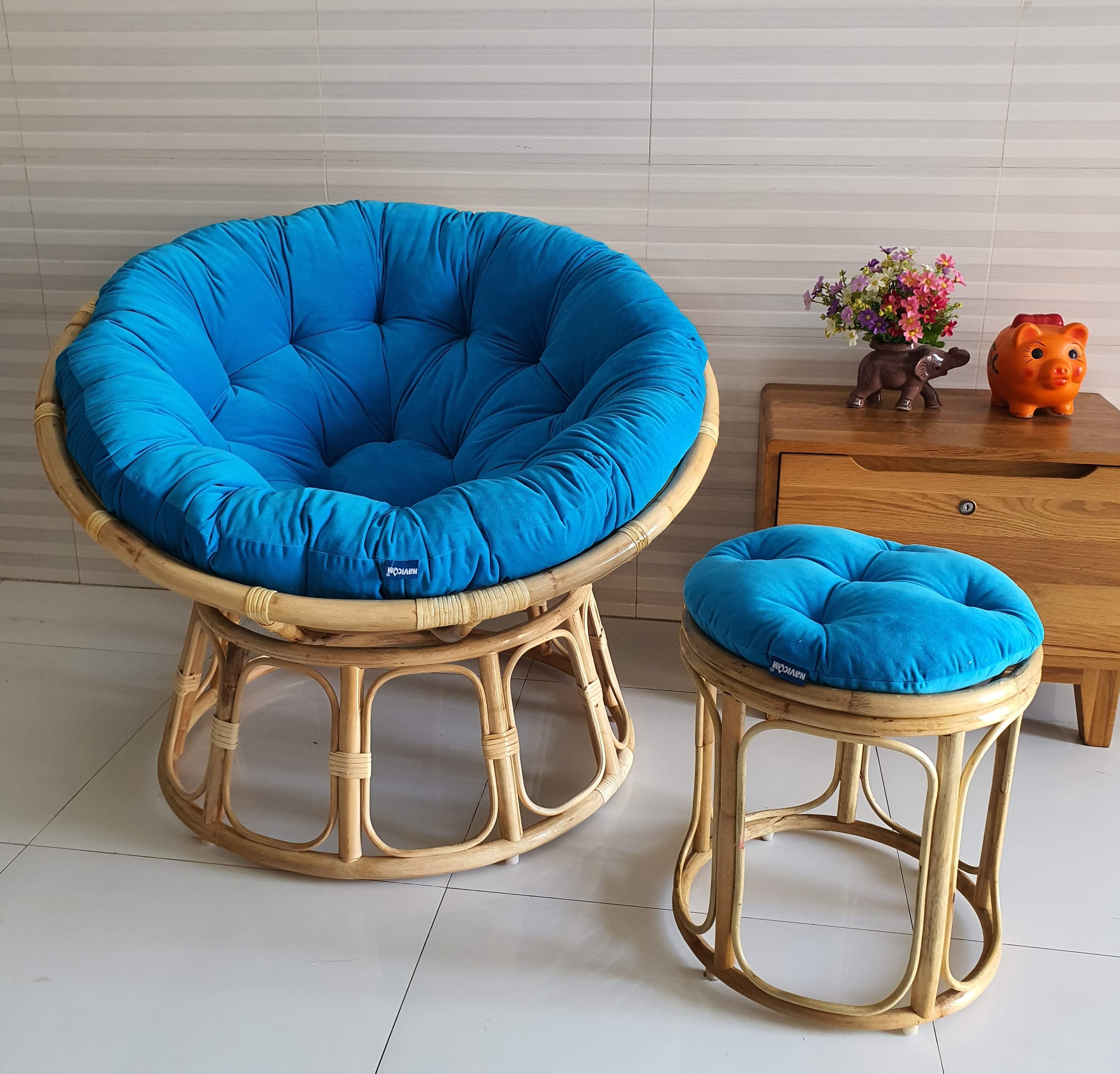 ✨Bộ ghế thư giãn papasan + đôn nhỏ ( vải nhung cao cấp xanh biển)