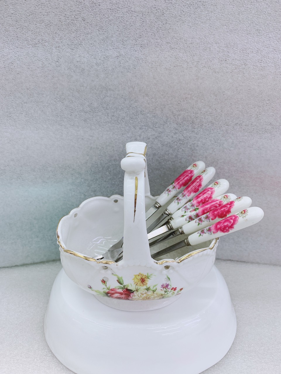 💦Combo bộ 6 muỗng nĩa inox 304 trái cây cán sứ cao cấp mang phong cách Bắc Âu sang trọng