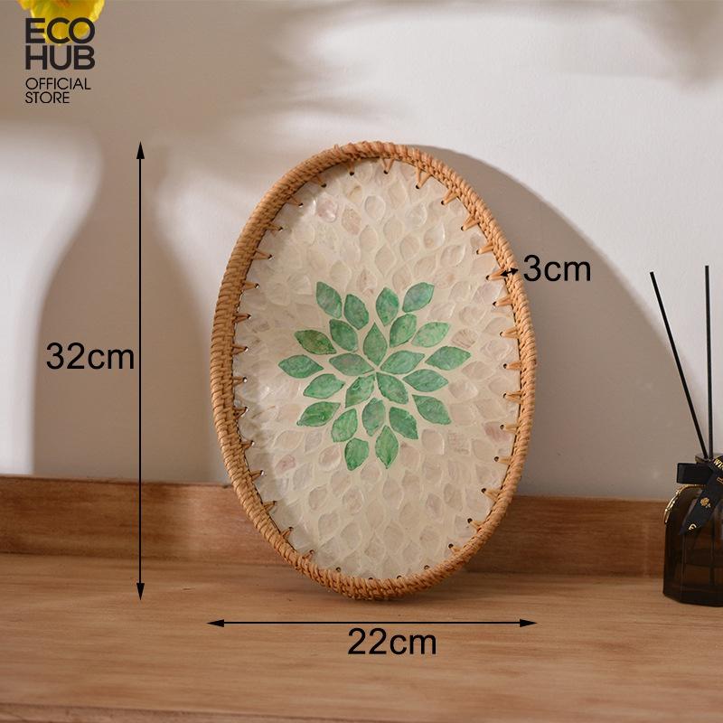 Khay Trà ECOHUB Khay Khảm Trai Tròn Decor Phòng Khách, Khách Sạn Đựng Đồ Đa Năng Màu Xanh Lá