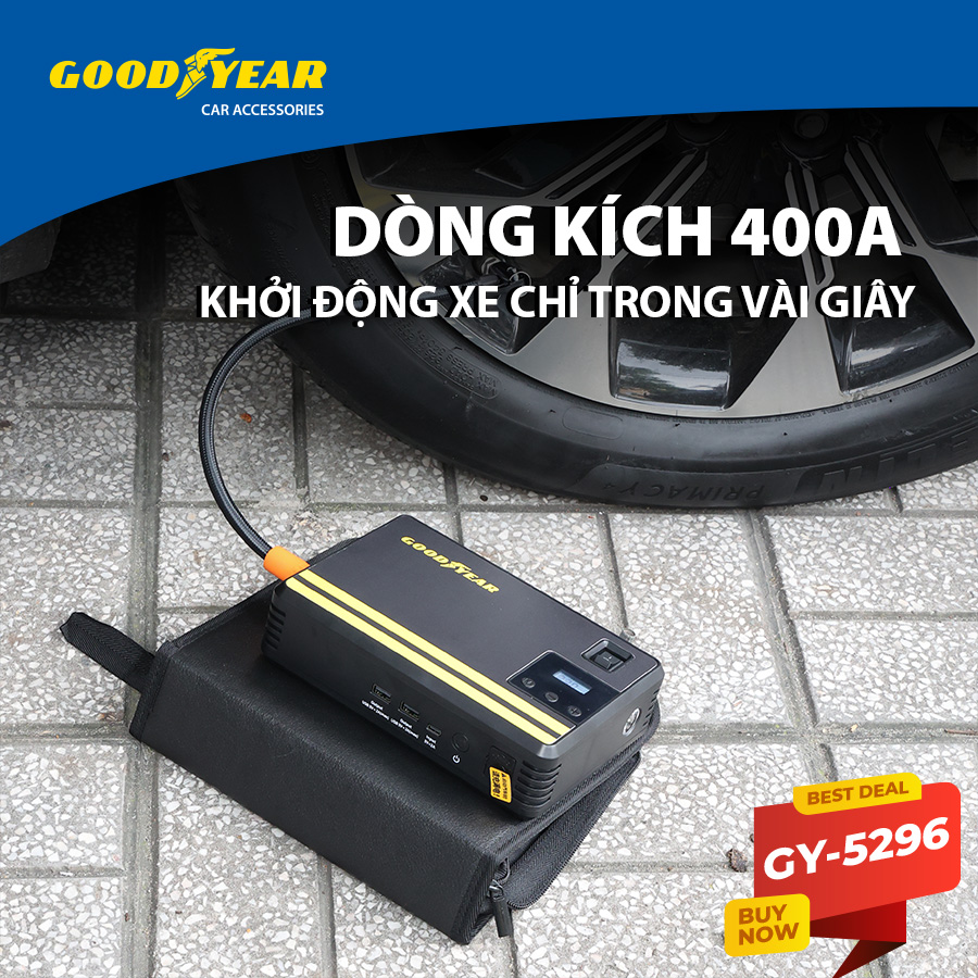 Bộ kích bình điện ô tô, kiêm pin sạc dự phòng Goodyear GY-5295, dung lượng 10000mAh Goodyear là một trong những công ty sản xuất lốp xe lớn nhất thế giới. Không chỉ nổi tiếng