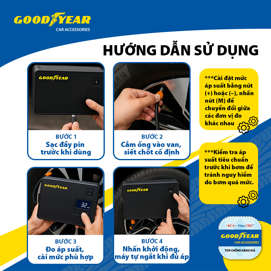 SHOP CIND XIN CHÀO QUÝ KHÁCH, CẢM ƠN QUÝ KHÁCH ĐÃ QUAN TÂM SẢN PHẨM CỦA SHOP CIND MÔ TẢ SẢN PHẨM Bộ Kích Bình 400A Kiêm Bơm Lốp Xe GOODYEAR GY-5296 Đa Chức Năng Sạc Dự Phòng 10400mAh Đèn LED Khẩn...
