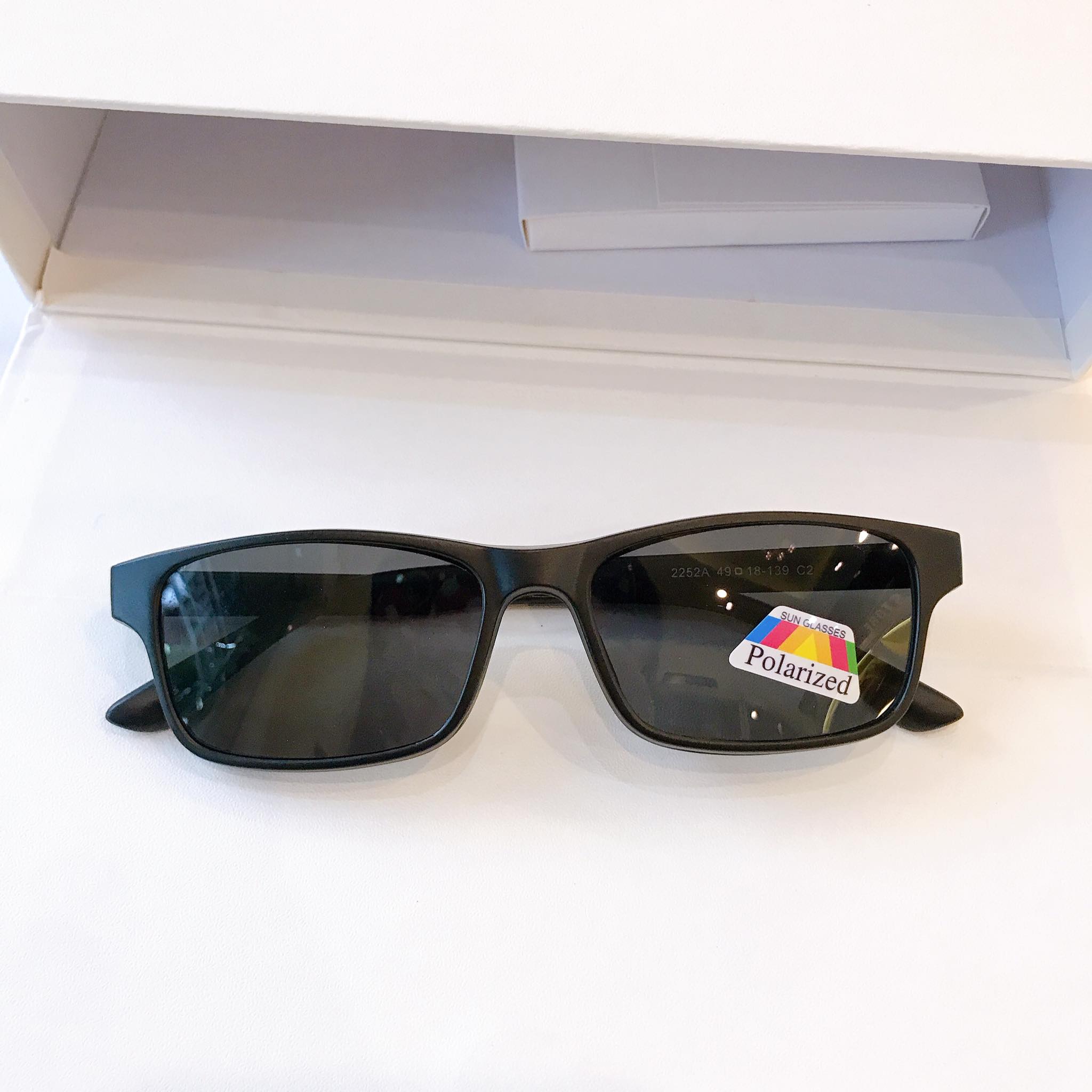 Bộ sản phẩm gồm : 1 gọng kính tròng 0 độ và 1 tròng râm Đen Polaroid Phân cực chống uv, chống lóa.