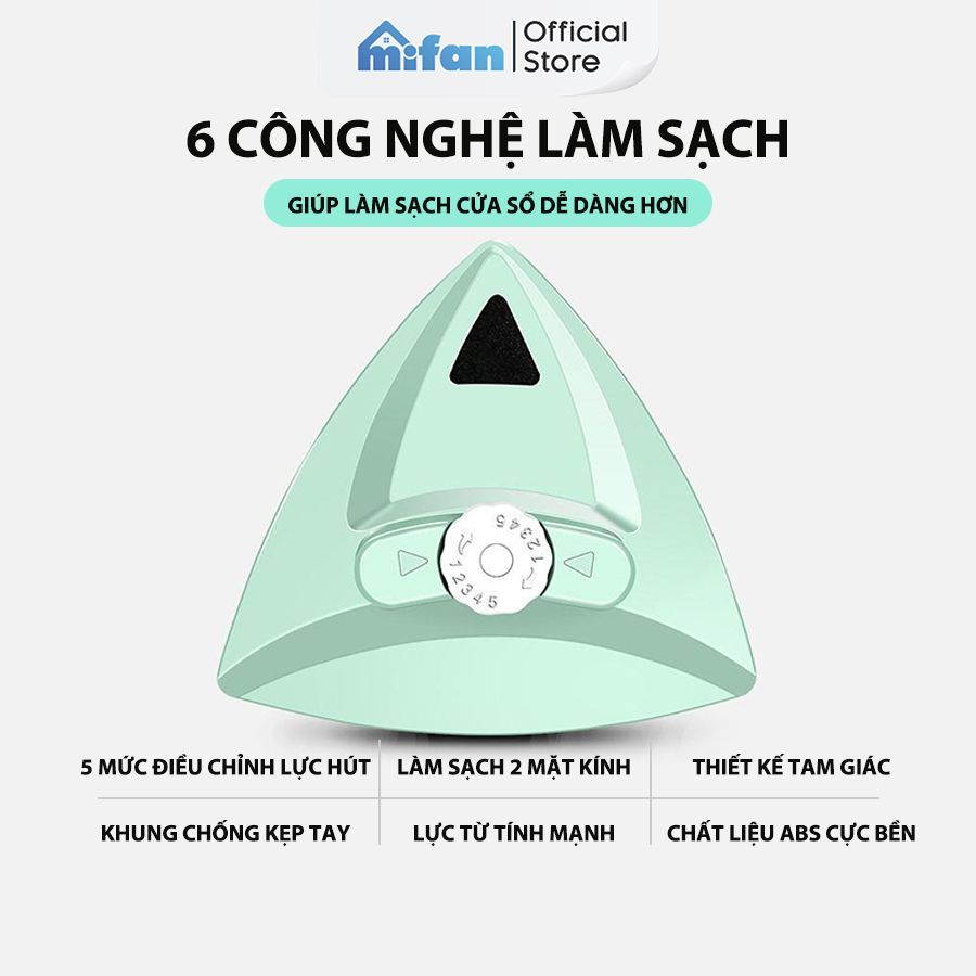 Bộ Lau Kính 2 Mặt Nam Châm Thông Minh MIFAN - Làm sạch cửa kiếng hai mặt nhà cao tầng chung cư - Nút điều chỉnh lực hút PHIÊN BẢN NÂNG CẤP 2022 - TÍCH
