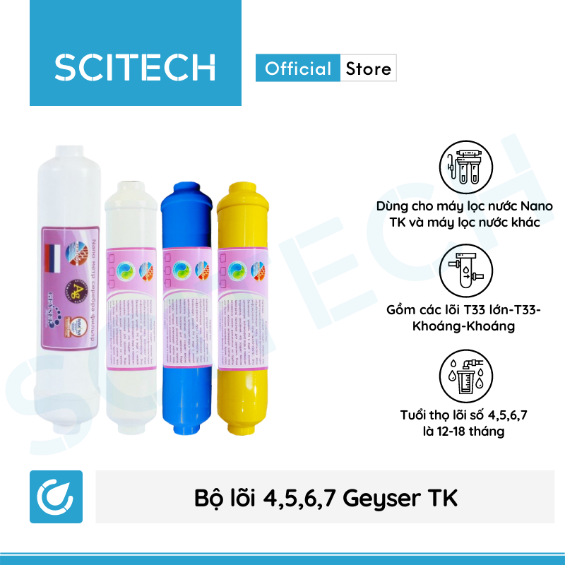 ✨Bộ lõi số 4,5,6,7 máy lọc nước Nano Geyser TK by Scitech (Lõi T33 lớn-T33-Khoáng-Khoáng/Nano Silver) - Hàng chính hãng