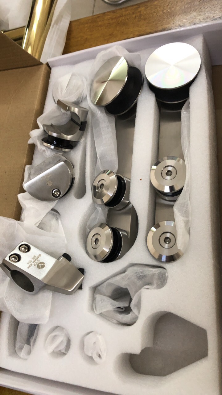bộ lùa treo  gồm : 2 bánh xe, loại bắt lục, siết cực kì chắc, inox 304 loại mờ 4 con đỡ ống inox 2 chặn kính 1 định vị dẫn hướng 2 đầu bịt ống tất cả được gói gọn trong hộp