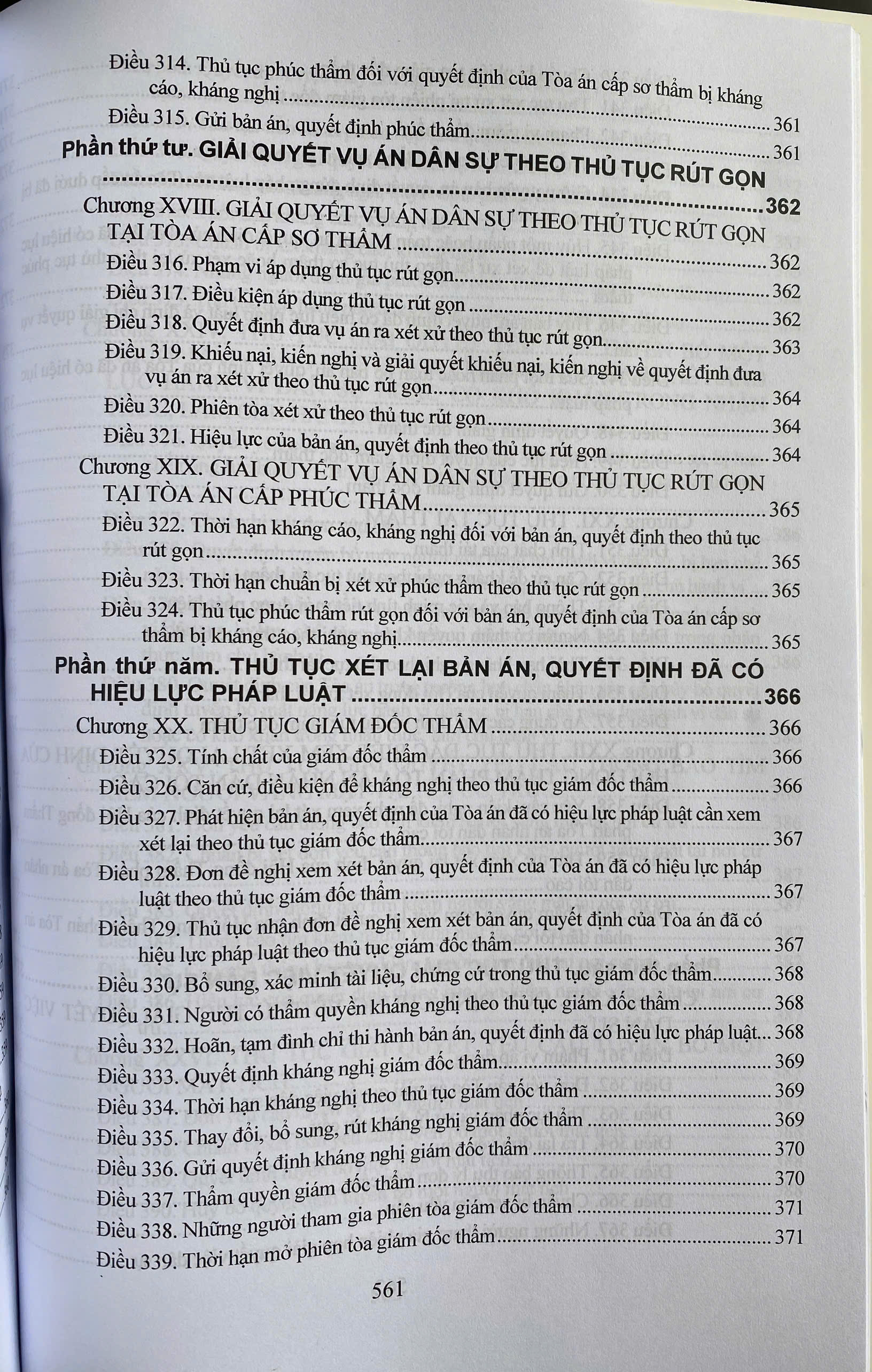 Cuốn sách là văn bản nhất thể hóa của Bộ luật Tố tụng Dân sự năm 2015 với nội dung sửa đổi, bổ sung Bộ luật Tố tụng Dân sự năm 2015 của Bộ luật