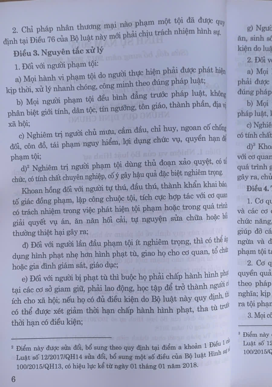 – Luật số 12/2017/QH14 ngày 20 tháng 6 năm 2017 của Quốc hội sửa đổi, bổ sung một số điều của Bộ luật Hình sự số 100/2015/QH13, có hiệu lực kể từ ngày 01 tháng 01 năm 2018;