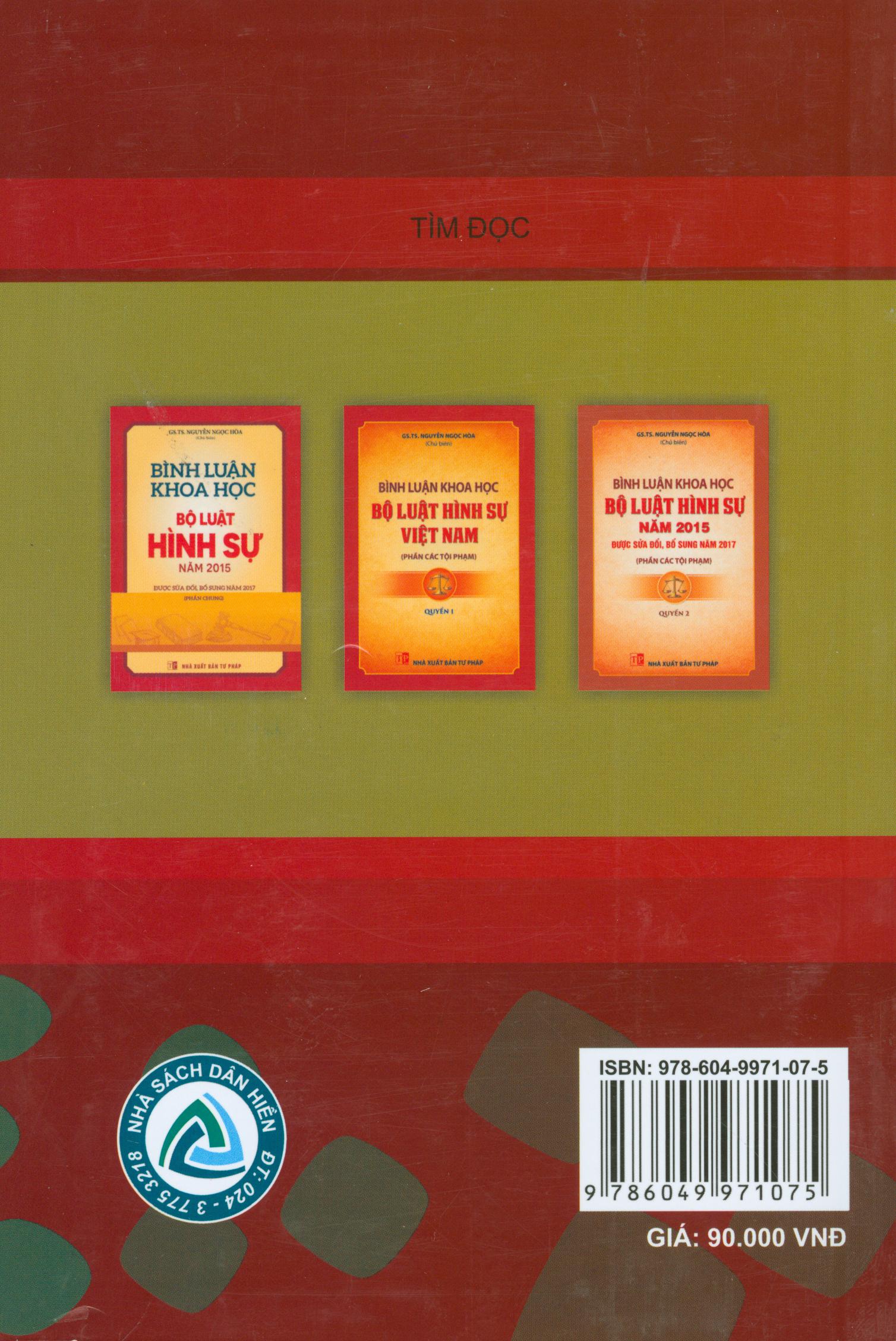 Sách Bình Luận Khoa Học Bộ Luật Hình Sự Năm 2015 Được Sửa Đổi, Bổ Sung Năm 2017 (Phần Các Tội Phạm) - Quyển 1 Tác giả: GS.TS. Nguyễn Ngọc Hòa Nhà xuất bản: Nhà