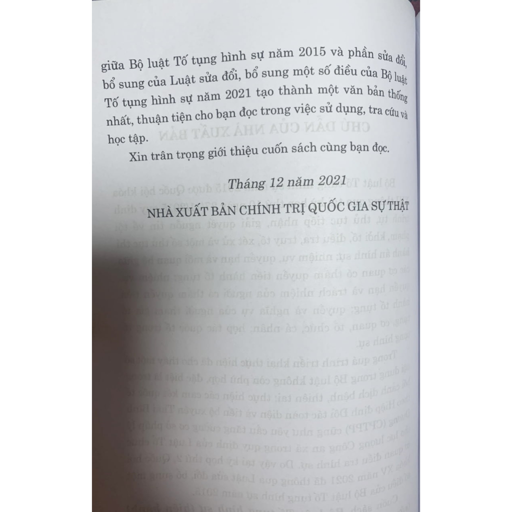Phiên bản Bộ luật tố tụng hình sự năm 2015 (đính kèm 4 trang nội dung chỉnh sửa năm 2021), nên bạn đọc cân nhắc khi mua tham khảo     Bộ luật tố tụng