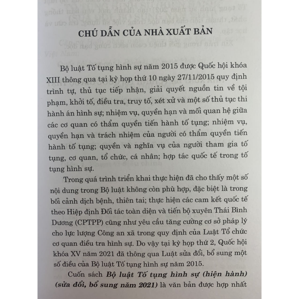 Tên sách: Bộ Luật Tố Tụng Hình Sự (Hiện Hành) (Sửa Đổi, Bổ Sung 2021)